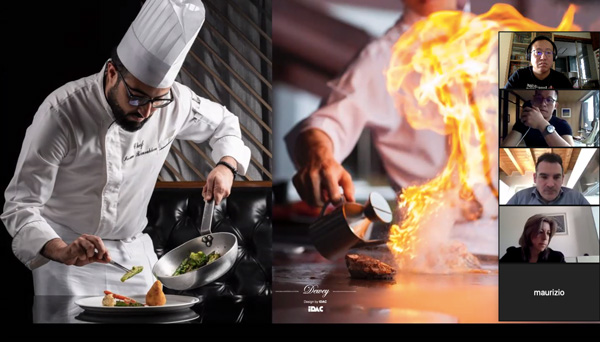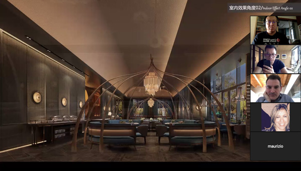 他將自己親自主持設(shè)計(jì)的深圳高端餐飲品牌——都一樂斯項(xiàng)目進(jìn)行講解!從接到項(xiàng)目初期到規(guī)劃設(shè)計(jì),找到設(shè)計(jì)靈感來源,再如何把靈感從抽象到具象落地呈現(xiàn)到項(xiàng)目的整個(gè)過程,向國(guó)際設(shè)計(jì)交流會(huì)議進(jìn)行講解和展示!他認(rèn)為設(shè)計(jì)師對(duì)美會(huì)有獨(dú)特的眼光和遠(yuǎn)見,濃縮凝聚成獨(dú)有品味呈現(xiàn)在設(shè)計(jì)作品中!屏幕下,隔空能感受到國(guó)際設(shè)計(jì)師對(duì)該項(xiàng)目作品頗感興趣和熱情,對(duì)設(shè)計(jì)方案贊賞有佳!