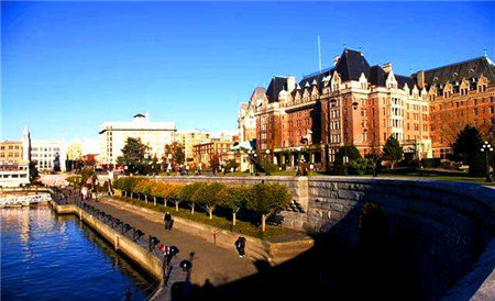 也算是歷史悠久了,帝后飯店建于1908年,建筑費(fèi)超過160萬元。反光硬木地板、絲絨家俬、雕琢而成的窗框橫梁,堡壘式的大樓帝王氣派一如往昔。建筑高大精致,墻上爬滿綠色藤蔓,直到房頂。據(jù)說,英國(guó)女皇到維多利亞,即下榻于此,飯店有供女皇專用的通道和門。