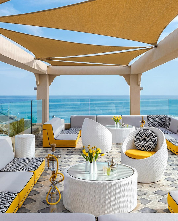 其次,酒店的海景房除了室內(nèi)的設(shè)計(jì),室外肯定也是要花費(fèi)心思的,我們可以室外做些延伸的露臺(tái),讓客人可以在戶外直接感覺(jué)海風(fēng)的清涼。室外露臺(tái)的話可以做一些景觀的設(shè)計(jì),設(shè)計(jì)成一個(gè)小的私家花園的感覺(jué),再在中間設(shè)計(jì)一個(gè)符合意境的餐桌,這樣客人可以一邊品嘗美味佳肴,一邊欣賞絕世海景。