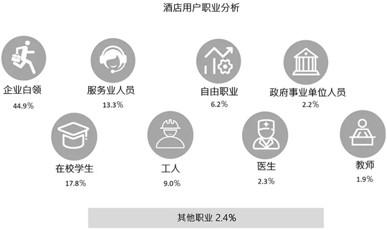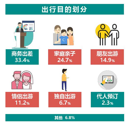 從數(shù)據(jù)上看,在酒店入住人群出行目的中,商務(wù)出差比重高達(dá)33.4%。商旅與酒店聯(lián)系十分緊密,所以酒店設(shè)計(jì)可以在一定程度上加重商務(wù)功能,特別是商務(wù)酒店設(shè)計(jì)時(shí),對(duì)于商務(wù)功能及空間設(shè)計(jì)上要有更高更人性化的要求。