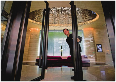 當客人到達酒店時,他們首先看到的是酒店的入口,這會給客人留下第一印象。對于酒店來說,入口不僅是進出的通道,也是室內和室外的過渡空間。入口包括門、門洞、臺階、引道、入口廣場和該范圍內的其他因素(如鋪地、綠化、欄桿、水景、雕塑、停車場等)。