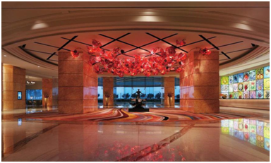 大堂設計應遵循酒店“以人為本”的經營理念,注重營造寬敞、華麗、輕松的氛圍,為客人帶來美好的享受。酒店形象定位、投資規(guī)模、建筑結構等條件決定大堂的整體風格和效果。在大堂設計中,應采用各種設計方法圍繞概念主題營造大堂氛圍。
