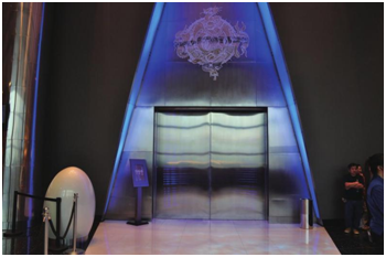 電梯廳是聯系大堂與客房的重要交通空間,通常設置在大堂的次要位置并要方便客人到達。電梯廳內可以設置垃圾箱、陳設品或休息設施等,還要有足夠的空間容納等候電梯與進出電梯的客人及他們攜帶的行李。